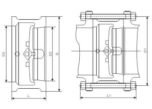 對夾雙瓣式蝶型止回閥結(jié)構(gòu)尺寸圖: