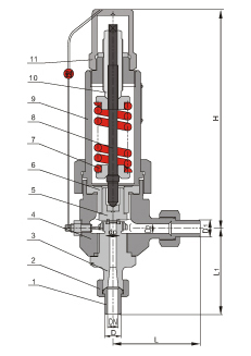 彈簧微啟式高壓安全閥結(jié)構(gòu)圖: