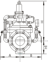 當閥門從進口端給水時,水流過針閥進入主閥控制室,并經過導閥、球閥流出主閥控制室到出口,此時主閥處于全開或浮動狀態。調定主閥上部的流量調節閥,可為主閥設定一定開度。調節針閥開度和調節導閥彈簧壓力,即可使主閥開度保持在設定開度,并在壓力變化時導閥進行自動調節,保持流量不變。