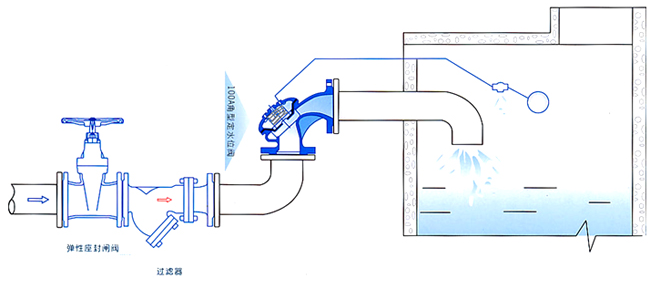 100A角型定水位閥是一種隔膜式調(diào)節(jié)水箱和水塔液面高度的閥門。閥門由一特殊強(qiáng)化尼龍膜片將其分為上下兩個空室,當(dāng)液面達(dá)到設(shè)定位置時,浮球?qū)чy關(guān)閉,上腔壓力大于下腔,閥門關(guān)閉,即停止供水;當(dāng)液面下降超過預(yù)設(shè)位置,浮球?qū)чy開啟,上腔壓力小于下腔壓力,閥門開啟,閥門向池內(nèi)供水。角型定水位閥安裝方便,可省去管道彎頭,節(jié)省安裝空間。該閥保養(yǎng)簡單、靈活耐用、液位控制準(zhǔn)確度高,水位不受水壓干擾且關(guān)閉緊密不漏水,性能可靠,成本底。浮球可隨水池的高度和距度安裝。
