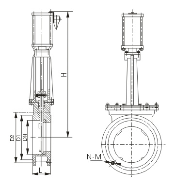 氣動刀型閘閥結構尺寸圖: