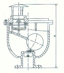 當(dāng)管內(nèi)開(kāi)始注水時(shí),塞頭停留在開(kāi)啟位置,進(jìn)行大量排氣,當(dāng)空氣排完時(shí),閥內(nèi)積水浮球被浮起,傳動(dòng)塞頭至關(guān)閉位置,停止大量排氣;當(dāng)管內(nèi)水正常輸送時(shí),如有少量空氣聚集在閥內(nèi)到相當(dāng)程度,閥內(nèi)水位下降,浮球隨之下降,此時(shí)空氣則由小孔排出。當(dāng)抽水機(jī)停止,管內(nèi)水流空時(shí),或遇管內(nèi)產(chǎn)生負(fù)壓時(shí),此時(shí)塞頭開(kāi)啟,吸入空氣確保管線安全。