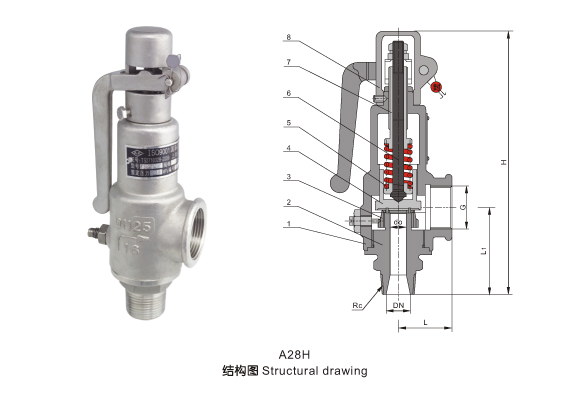 A28型帶扳手彈簧全啟式螺紋安全閥是一種用于無毒無害及非易燃易爆氣體或液體介質的管道及容器等設備作為超壓保護的*終安全保護裝置,該類型安全閥采用彈簧直接載荷式,螺紋連接,閥蓋封閉式結構,帶提升扳手。