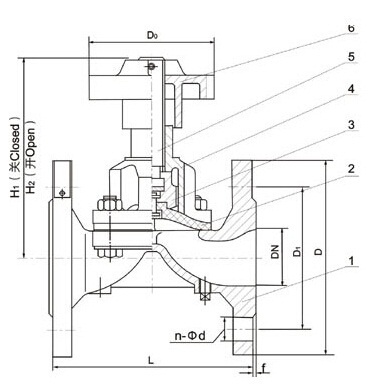 部件列表:1.閥體 2.隔膜 3.閥瓣 4.閥桿 5.閥蓋 6、手輪